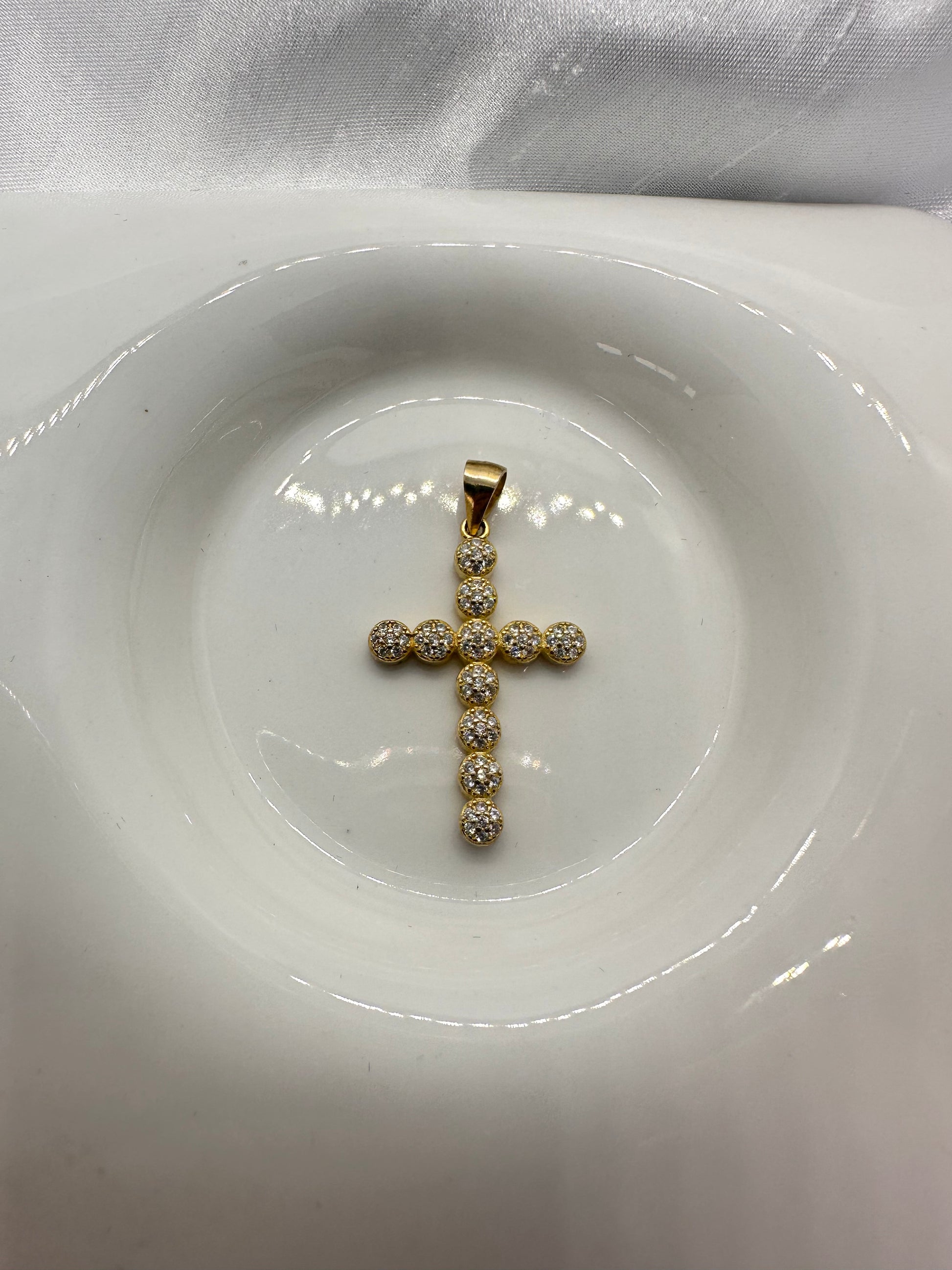 High quality jewelry with a layer of yellow and white 14k gold applied to a base of silver metal.